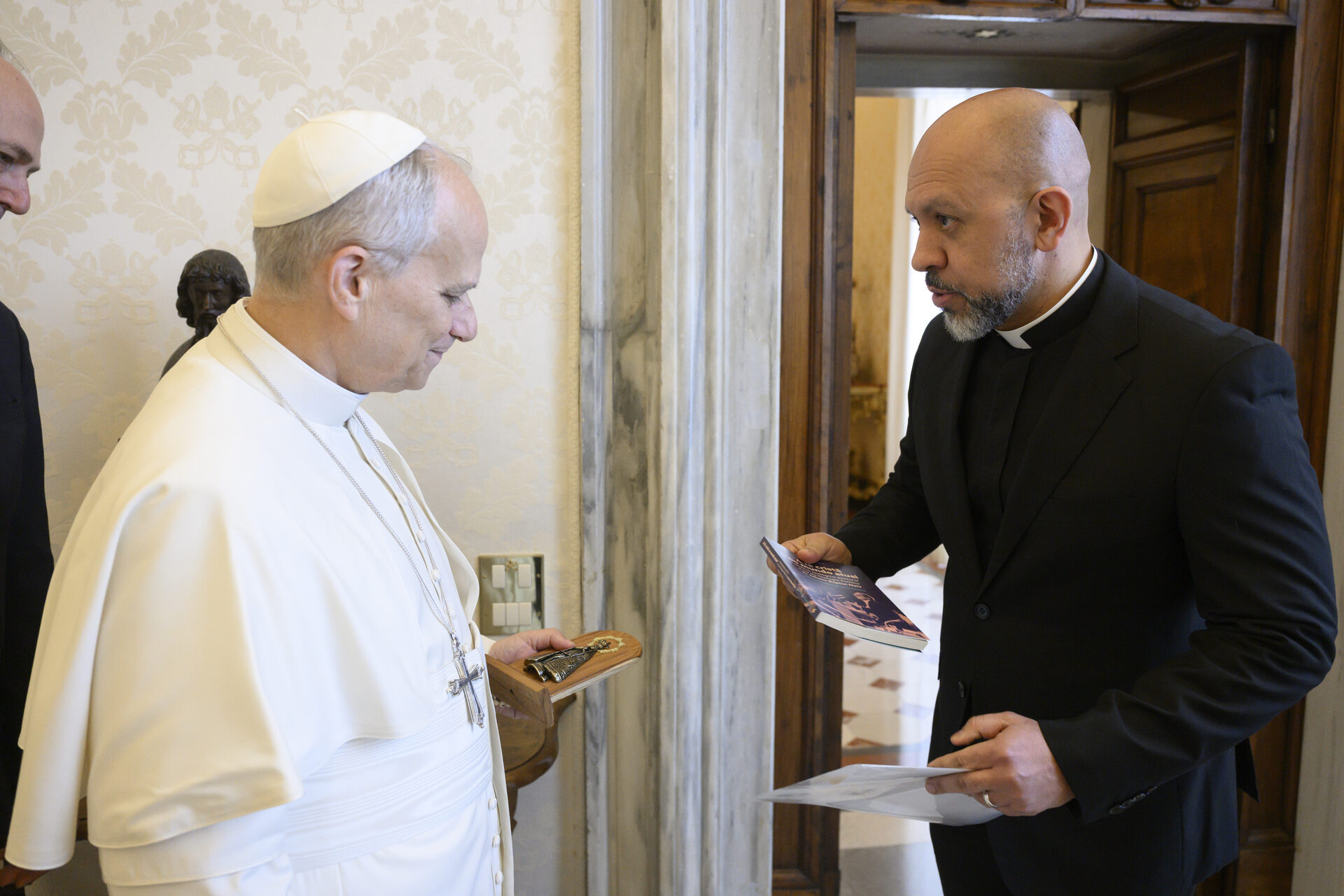 O padre Fábio Eduardo de Lima, 50 anos, da Diocese de Cachoeiro de Itapemirim, participou de uma audiência com o Papa Leão XIV na manhã desta segunda-feira, 12 de janeiro, no Vaticano. O encontro ocorreu ao meio-dia, no horário de Roma, e reuniu membros da Comissão Episcopal Missionária da Conferência Nacional dos Bispos do Brasil (CNBB), em agenda oficial com o Santo Padre. Também esteve presente o bispo diocesano de Cachoeiro de Itapemirim, Dom Luiz Fernando Lisboa, CP.
