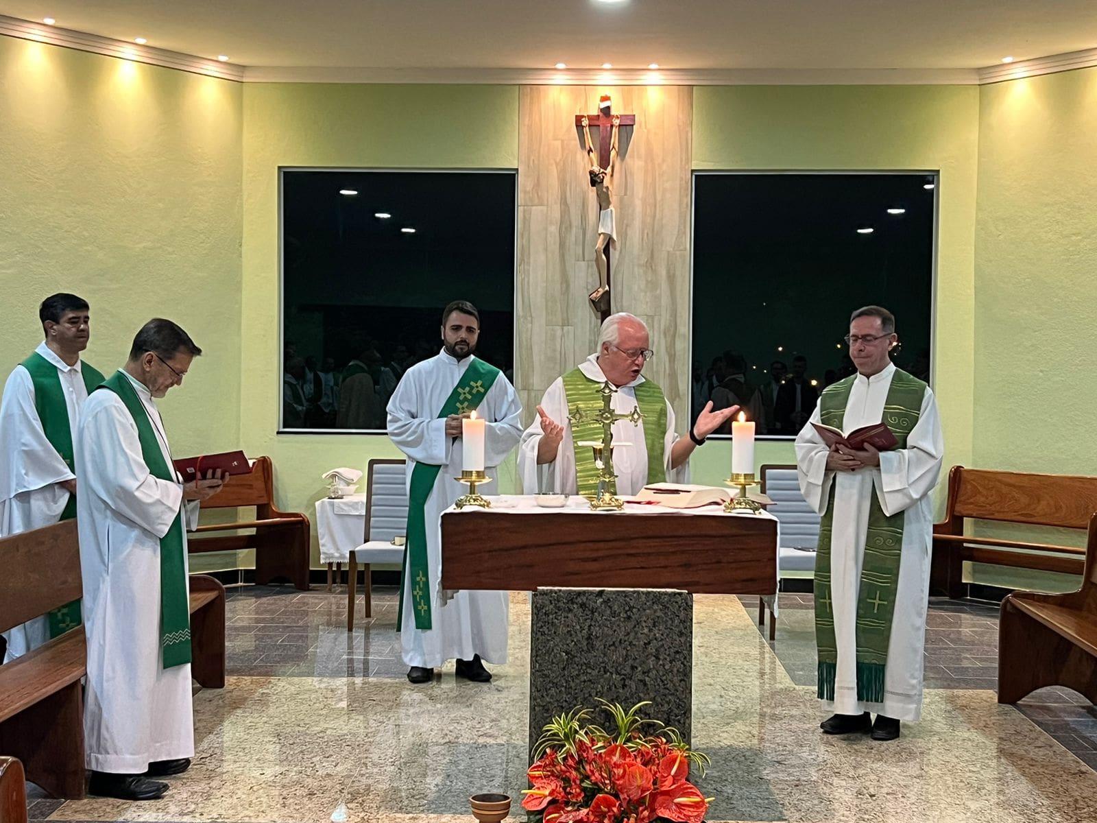 Um momento de festa e alegria marcou as celebrações dos 44 anos de Ordenação Sacerdotal do Vice-Reitor do Seminário Propedêutico Bom Pastor e Colaborador Pastoral da Paróquia Nosso Senhor dos Passos, padre Marco Antônio Schuwan. Na noite desta terça-feira, 02 de junho, durante o retiro anual do presbitério junto do bispo, na casa de retiros “Mãe da Igreja”, em Jerônimo Monteiro, os padres diocesanos se uniram ao aniversariante para render graças a Deus pelos anos de caminhada vocacional. O Bispo Diocesano de Cachoeiro de Itapemirim, Dom Luiz Fernando Lisboa CP, concelebrou a eucaristia que foi presidida pelo aniversariante.