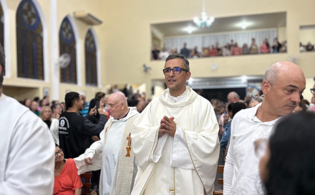 O padre Juliano Ribeiro Almeida foi empossado canonicamente, como novo pároco da paróquia Santo Antônio de Pádua, em Rio Novo do Sul, nesta terça-feira, 13 de maio, em missa com rito de posse canônica, presidida pelo bispo diocesano, Dom Luiz Fernando Lisboa CP, e concelebrada por alguns padres da Diocese de Cachoeiro de Itapemirim, e a presença de diáconos, seminaristas, autoridades e paroquianos. Padre Juliano assume a paróquia após retornar de uma experiência espiritual na França, na comunidade Nossa Senhora da Vida Instituto Notre Dame de Vie. Ele substitui o Dom Joselito Ramalho Nogueira, ordenado Bispo de “Tino” e Auxiliar da Arquidiocese de São Sebastião, no Rio de Janeiro (RJ), no dia 27 de abril. A celebração também foi transmitida pela equipe paroquial da Pastoral da Comunicação.