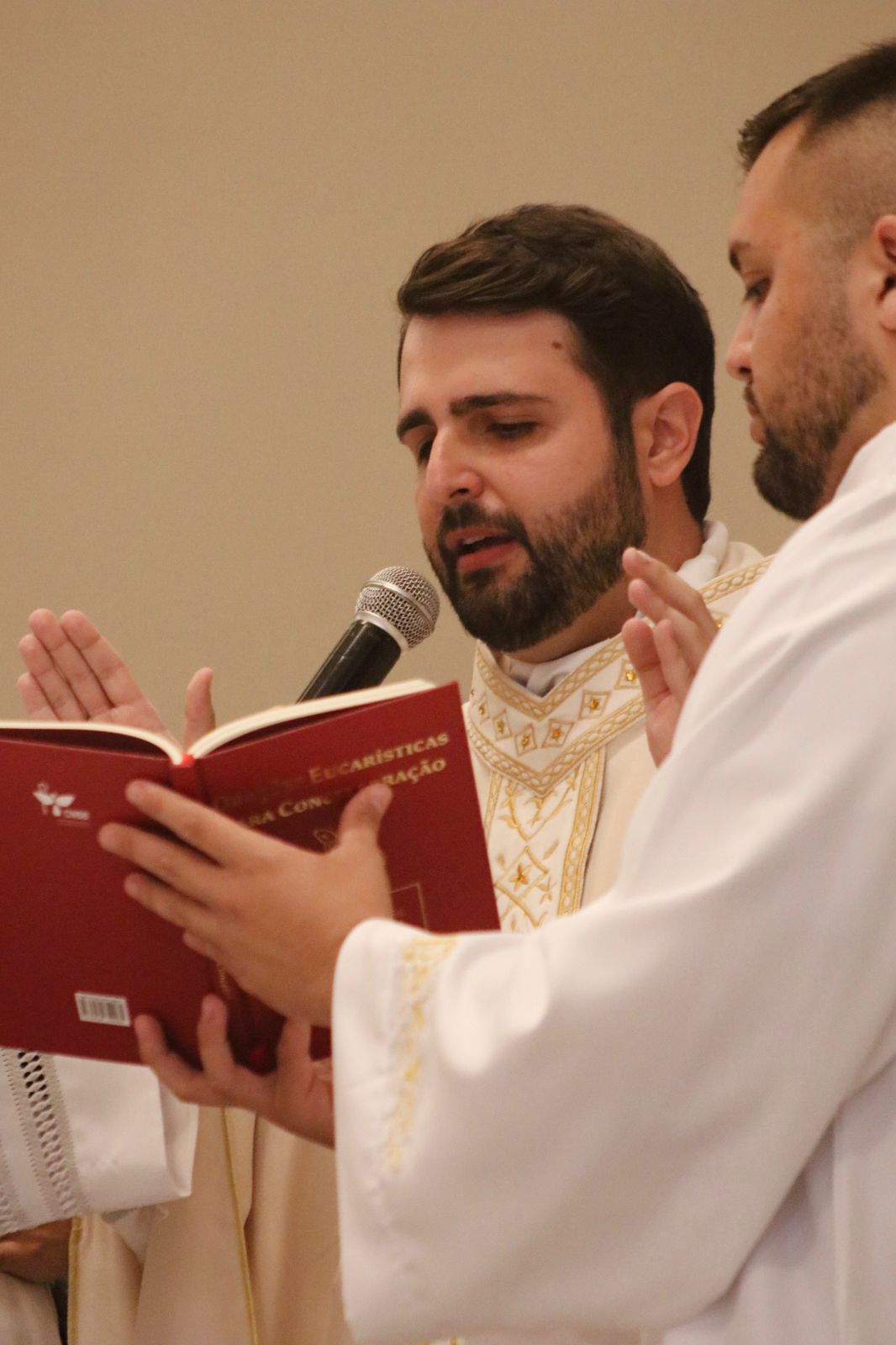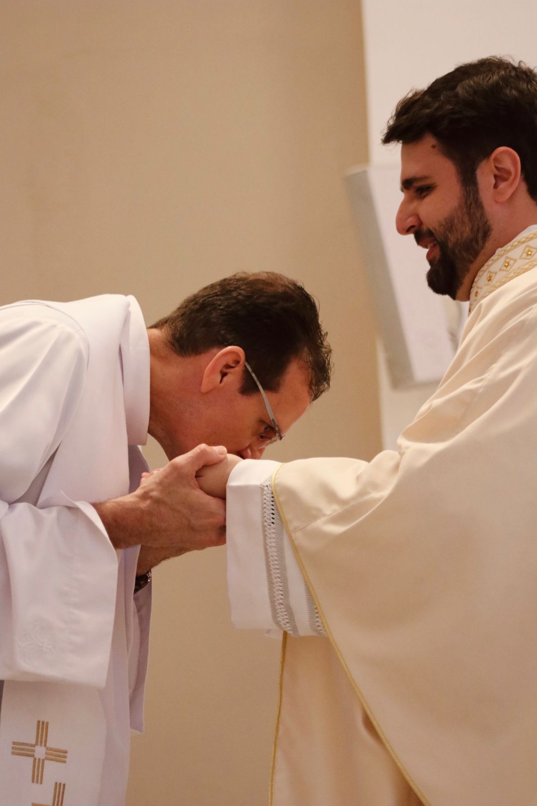 João Vitor foi ungido com o santo óleo, professou seus compromissos e foi revestido com os paramentos sacerdotais. Mostrando a alegria pelo novo irmão, os sacerdotes presentes na celebração o acolheram com abraço fraterno.