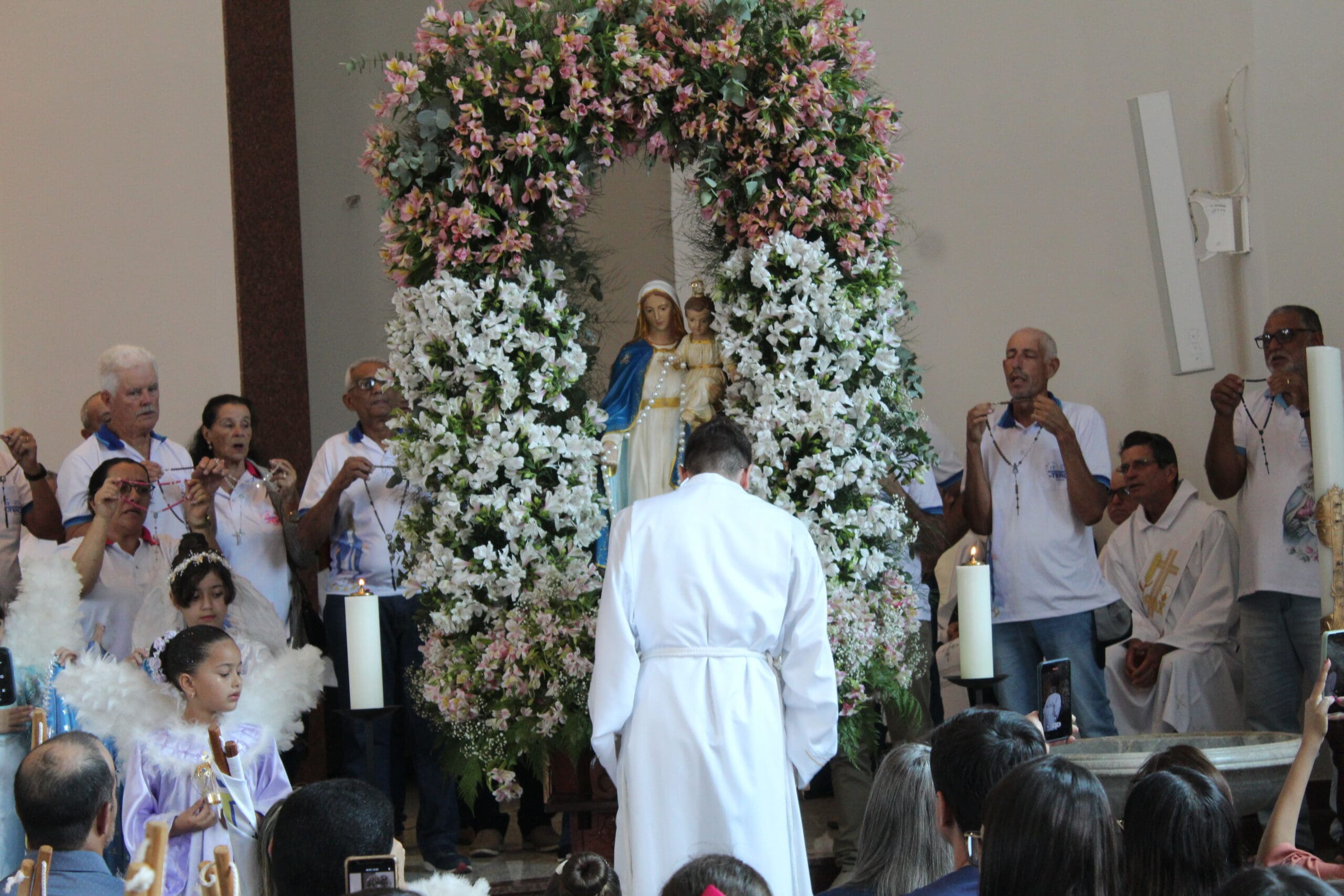 Ao final da celebração, uma bela homenagem à Nossa Senhora do Rosário contou com a participação dos representes do movimento “Terço Missionário”. Enfileirados no corredor central da matriz, os ‘tercistas missionários’ acolheram algumas crianças que, vestidas de anjos, levaram ao altar, juntos deles, dezenas de rosários. Os objetos religiosos compuseram o cenário perfeito para uma emocionante coroação que contou com a participação do padre Fabio Eduardo, do Diácono Ronivon Garcia de Carvalho e do seminarista Marciel Zucoloto Pizetta. Encerrando as festividades, padre Fabio agradeceu aos voluntários, apoiadores, lideranças e fiéis.