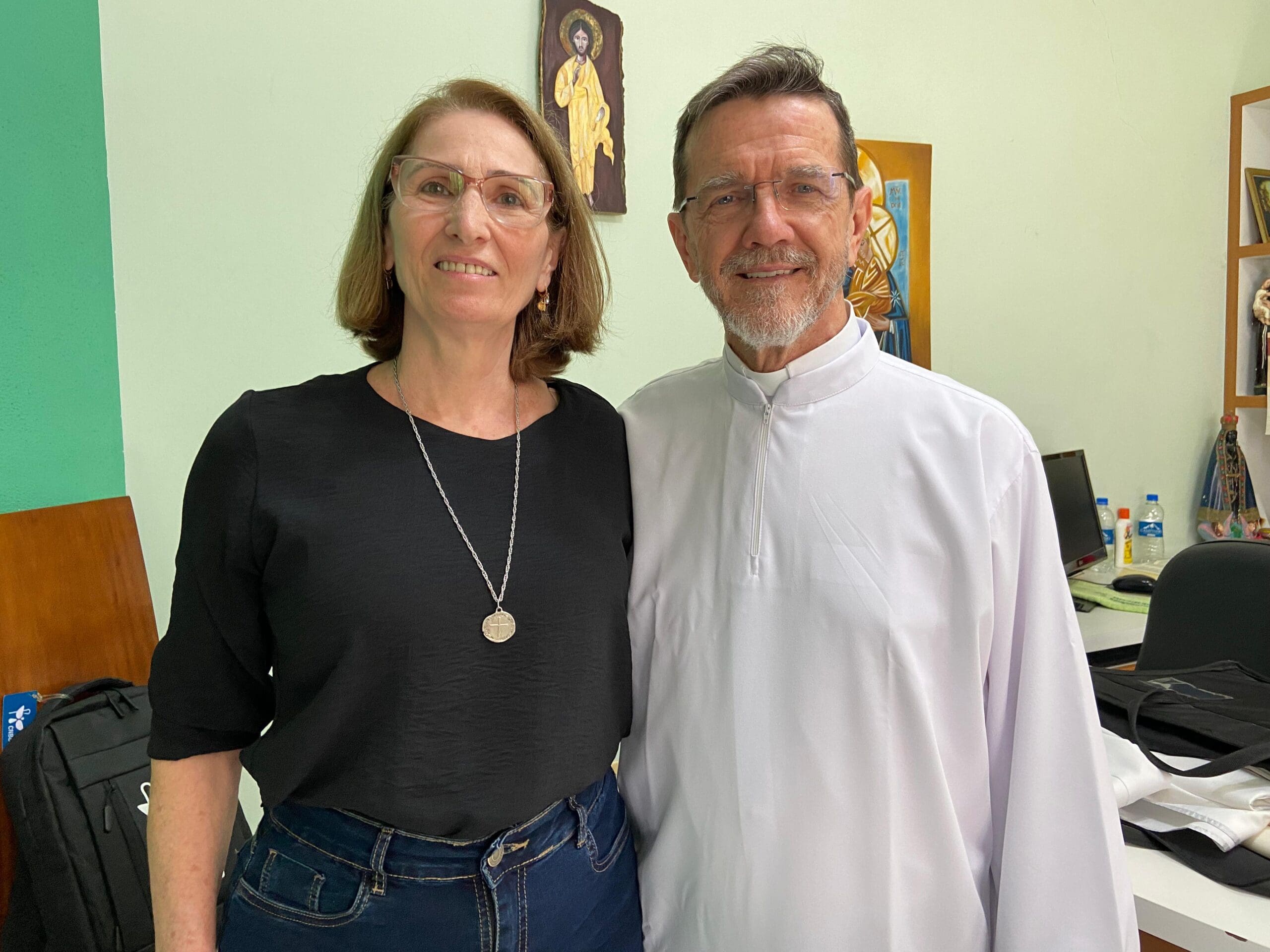 Ao final, Dom Luiz recebeu uma bela túnica branca confeccionada pela costureira Marinete Lovatti. O presente agradou o religioso que fez questão de vesti-lo e registrar o momento ao lado da costureira.