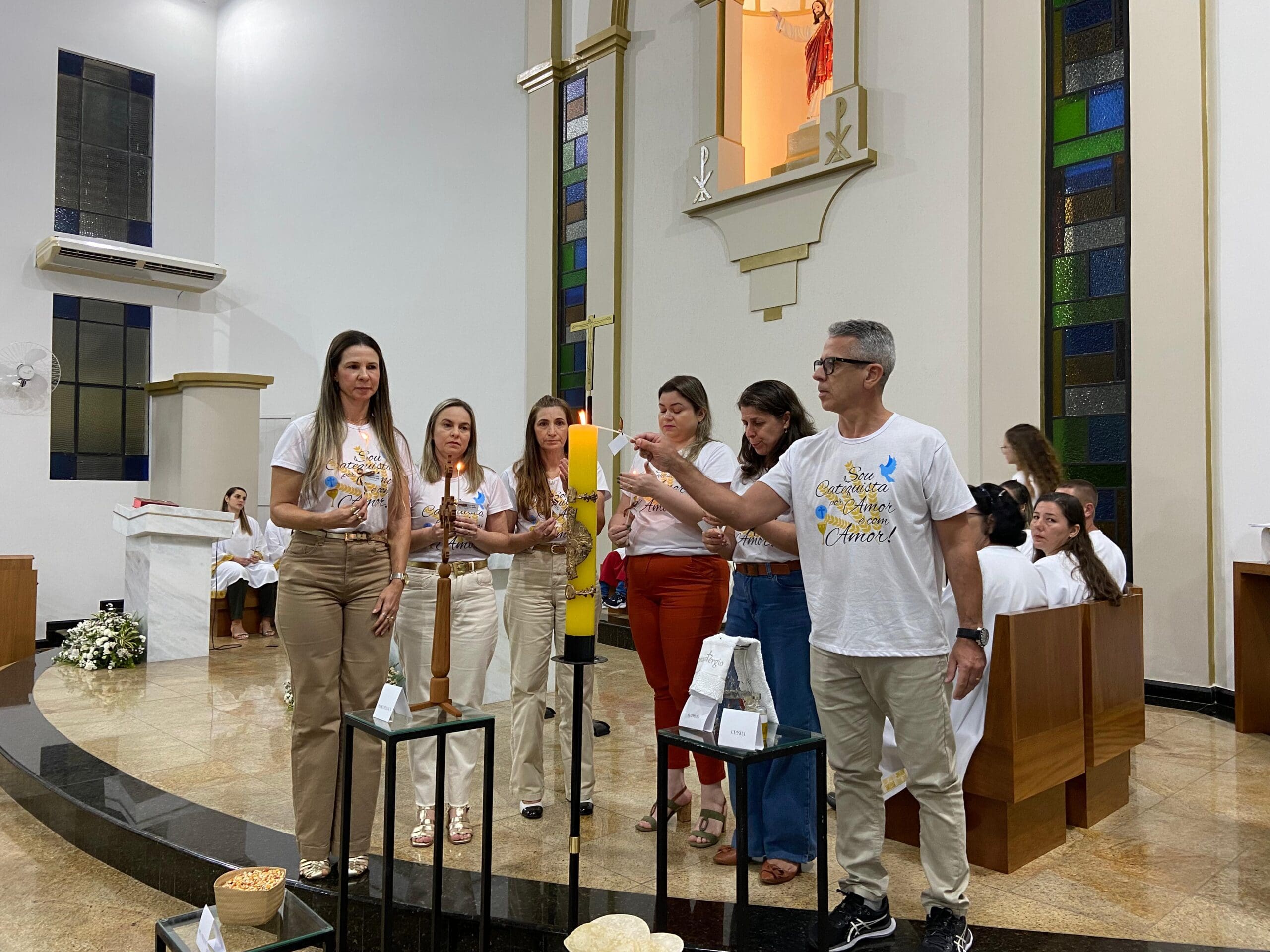 “Quando assumimos (a IVC), percebemos que muitos de nossos catequistas se colocavam à disposição, doavam o seu tempo, se sentiam chamados, mas ainda assim faltava algo. Fomos propondo momentos orantes aos nossos catequistas e, nestes três anos, fomos percebendo juntos que só a vocação não bastava. Era preciso ser catequista por amor e com amor. E foi fortalecendo este espírito de em tudo AMAR e SERVIR que a Catequese Paroquial hoje incendeia este Amor na Paróquia, caminha em unidade , com catequistas completamente envolvidos na missão, explicou a coordenadora paroquial da catequese, Camila Figueira Pinto.