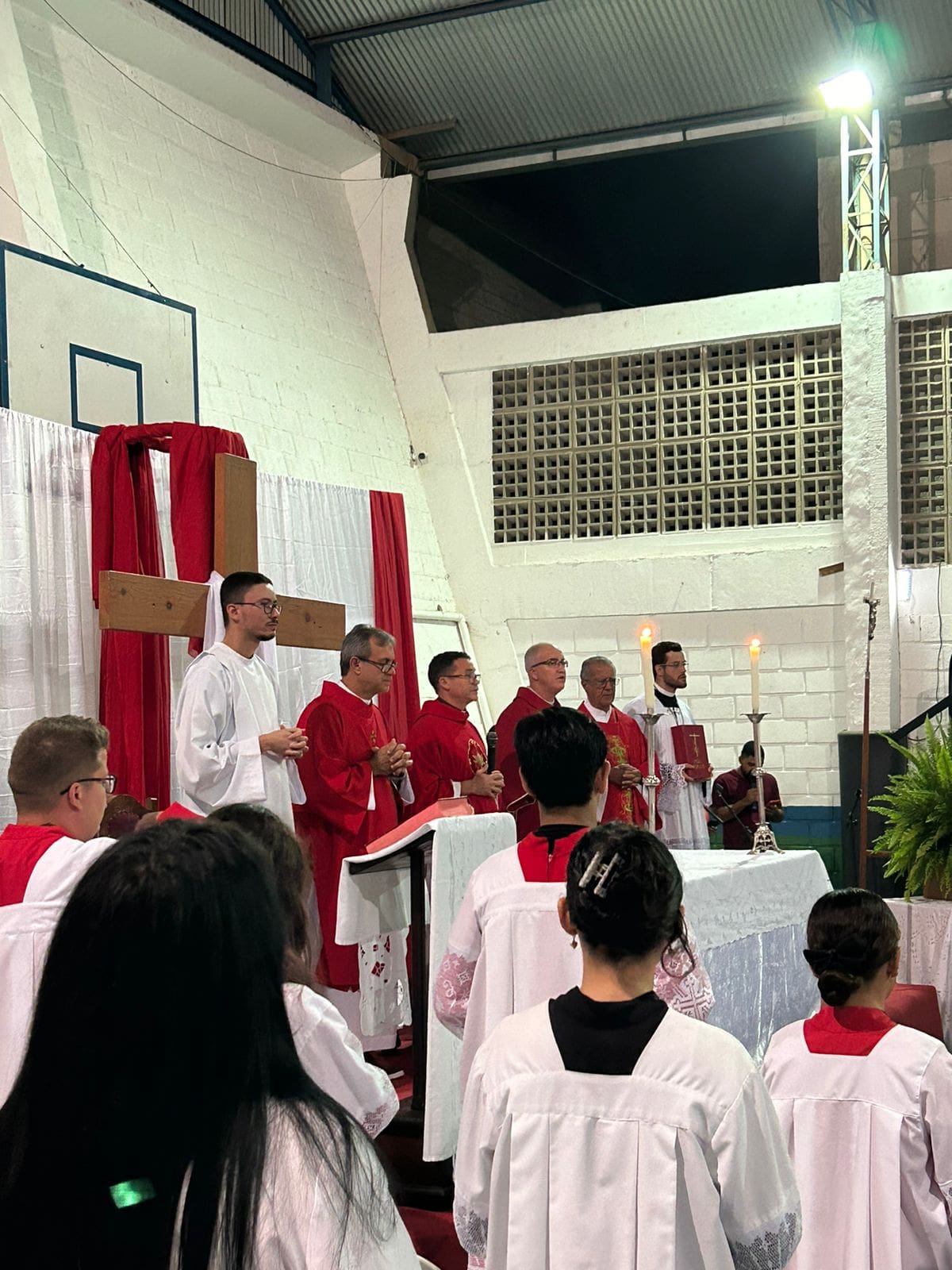 Em sua homilia, José Carlos falou da celebração litúrgica daquele dia e seu simbolismo riquíssimo: “Hoje a Igreja celebra a Exaltação da Santa cruz e nós, paróquia Nosso Senhor do Passos, também celebramos nossa festa da unidade. Neste dia em que dedicamo-nos a olharmos de maneira mais carinhosa para os passos do senhor e, quando pensamos nesses passos, não estamos mentalizando o chão onde Cristo pisou, mas sim, seu projeto de vida. E para onde esse projeto levou Jesus?” Questionou o presbítero, respondendo: “O projeto de vida de Jesus o levou à cruz. Cristo morreu na cruz pelo projeto de amor e fidelidade de Deus Pai conosco”.