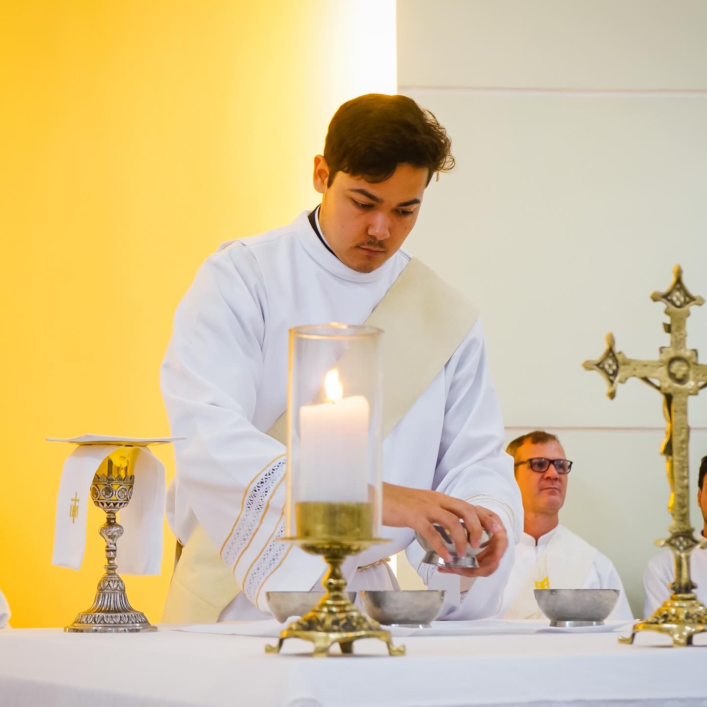 A Missa de apresentação foi presidida pelo padre Antônio Marcos Moura da Silva e concelebrada pelo padre Enildo Genésio de Souza e reuniu fiéis, lideranças pastorais e membros da comunidade, que participaram de um momento marcado pela fé, pelo acolhimento e pela gratidão. Durante a celebração, a comunidade expressou sua disposição em caminhar junto ao novo diácono, fortalecendo a missão evangelizadora da paróquia.