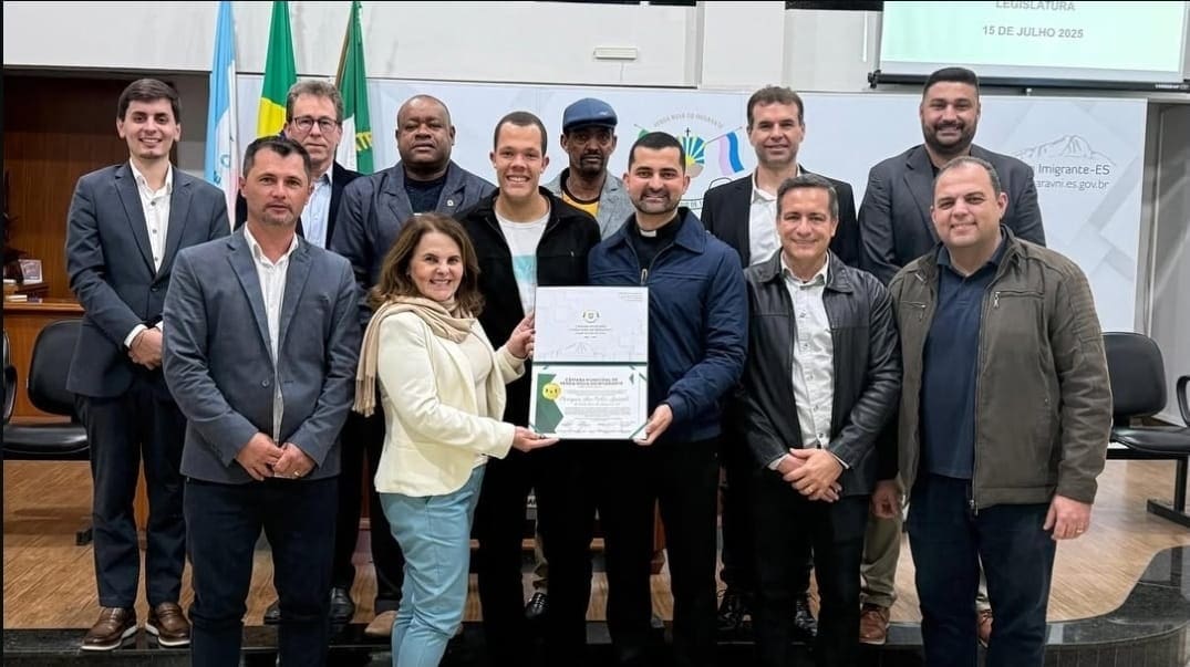 No último dia 15 de julho, a Paróquia São Pedro Apóstolo, da Diocese de Cachoeiro de Itapemirim, foi agraciada com uma Moção de Aplausos concedida pela Câmara Municipal de Venda Nova do Imigrante. A homenagem reconhece o empenho, a beleza e a força evangelizadora da Novena e da tradicional Festa de São Pedro realizadas neste ano.