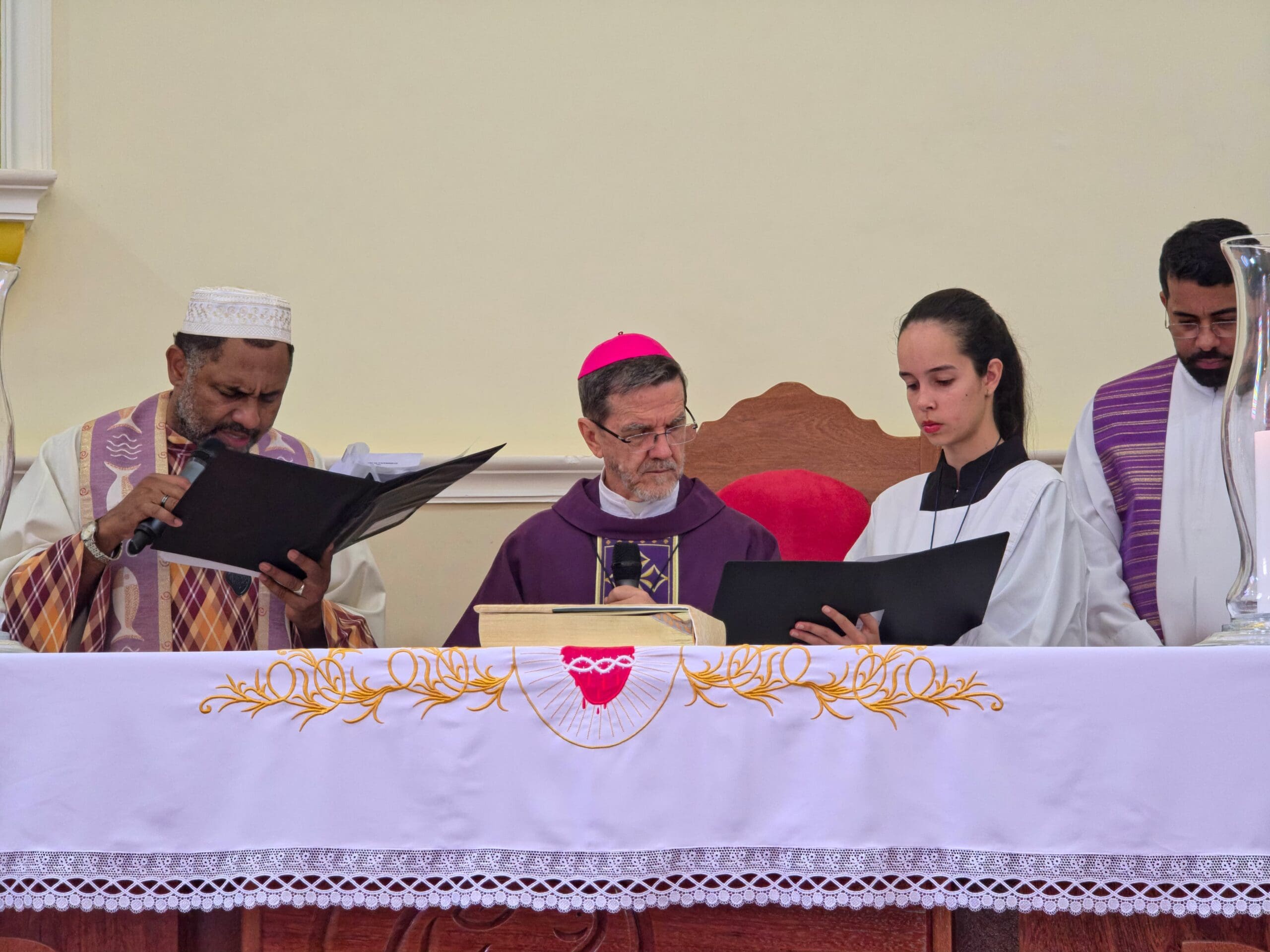 Em seguida, conforme os ritos próprios, o novo Administrador Paroquial recebeu a chave da igreja e outros símbolos importantes para a caminhada pastoral: a chave do sacrário, sinal do cuidado com a Eucaristia; o óleo, que recorda o batismo e a unção dos enfermos; e a estola roxa, símbolo do Sacramento da Penitência. Ao final da celebração, após a homenagem da comunidade, o sacerdote dirigiu palavras de agradecimento aos presentes.