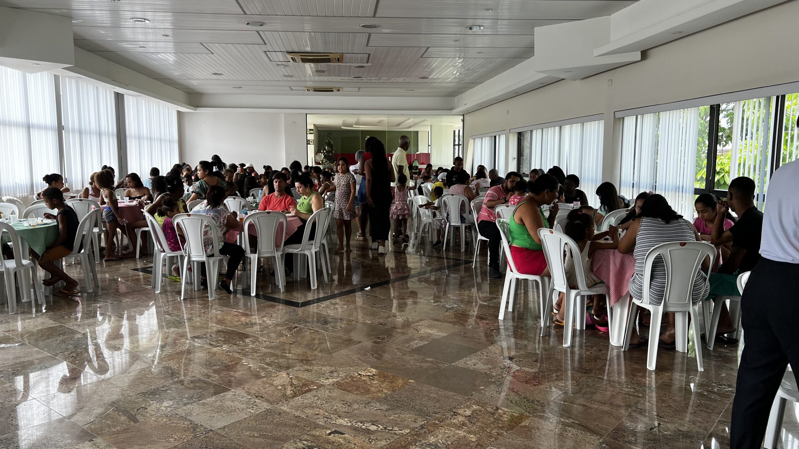 Dezenas de famílias carentes ganharam um almoço de Natal neste sábado, 30 de novembro, na Paróquia Nosso Senhor dos Passos (Matriz Velha), em Cachoeiro de Itapemirim. O evento beneficiou assistidos no Centro Social Madre Teresa de Calcutá. Dezenas de voluntários trabalharam para o almoço acontecer.
