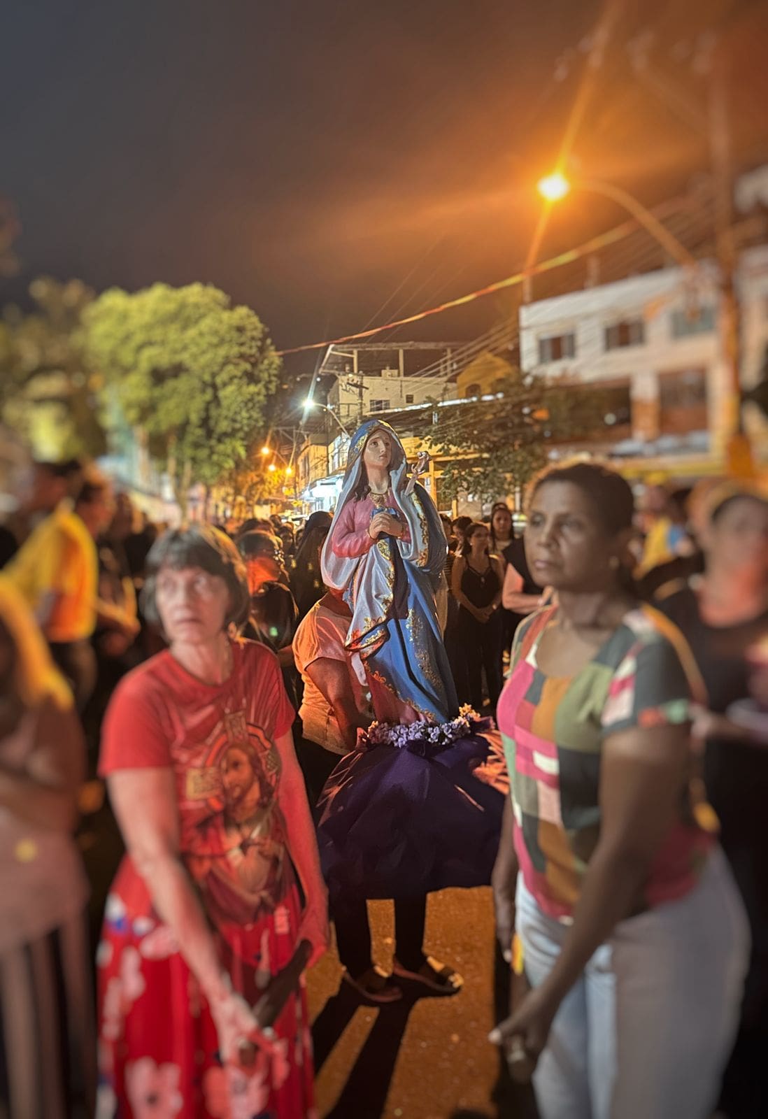Um dos lados da “Procissão do Encontro” saiu do bairro Vila Rica e seguiu até a Igreja da Consolação, enquanto a outra parte dos católicos deixou o bairro Santo Agostinho, passando pela Avenida Jones dos Santos Neves, no Guandú.