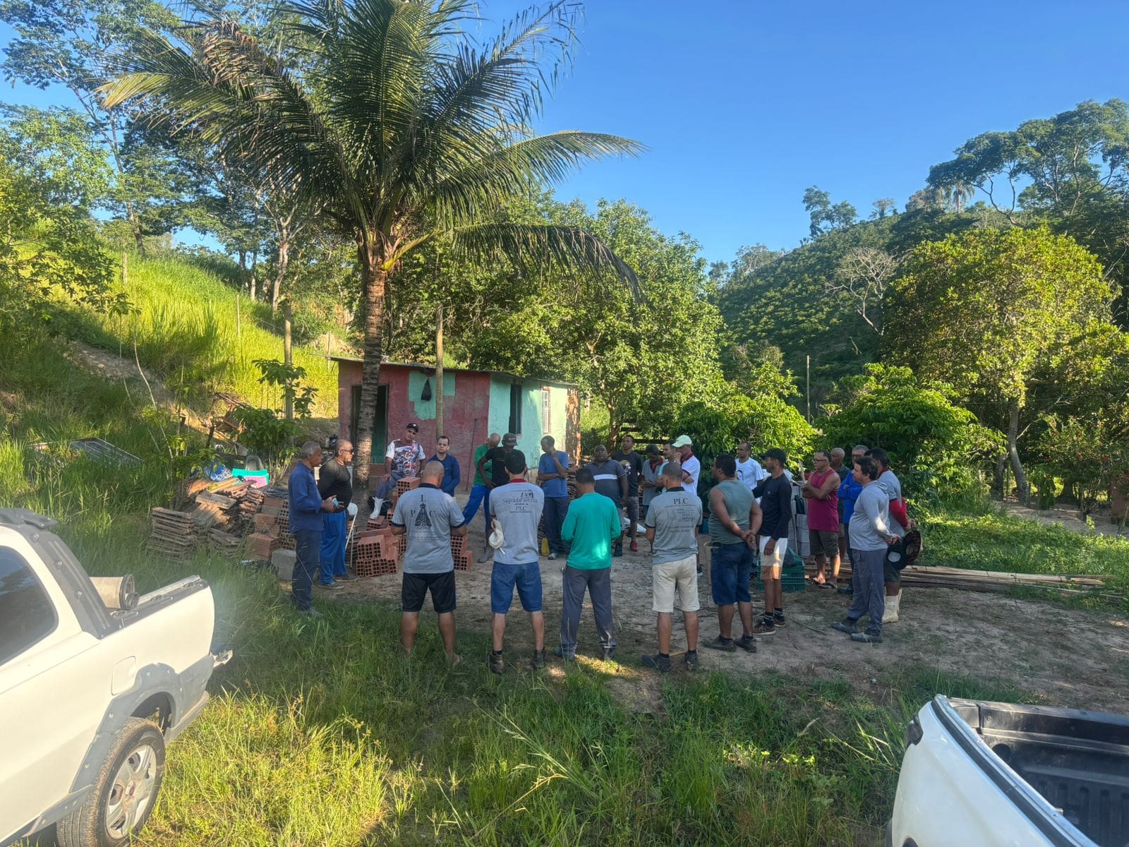 Desde o início dos trabalhos, há algumas semanas, até o momento, já foram levantadas paredes, trocado o telhado, construído fossa e muitos outros serviços. O beneficiado é o Sr. Natanael, 50 anos, mais conhecido como Natal. Morador de São Gabriel, distrito de Muqui, a situação da casa onde mora, comoveu os PLCistas, que “arregaçaram as mangas” e deram início ao trabalho.