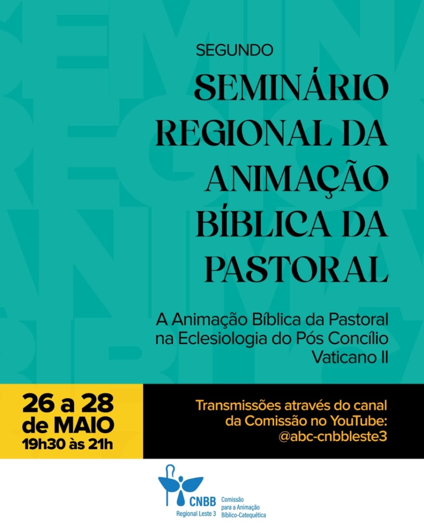 A Comissão para Animação Bíblico-Catequética do Regional Leste 3 (CABIC / Leste 3), promoverá de 26 a 28 de maio o Segundo Seminário Regional da Animação Bíblica da Pastoral. O evento será em modalidade on-line e contará a cada dia com assessoria e temas específicos.
