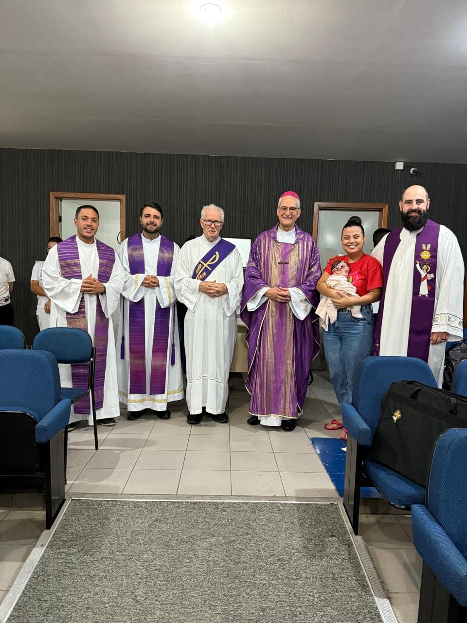 Um momento marcante de muita emoção foi a apresentação da Maria Vitória, que nasceu a pouco mais de um mês e já estava entre nós nos braços acolhedores da mãe Kamila. Foi recebida com carinho e amor por todas e todos. Chamada de sobrinha e mascote da Pastoral. Recebida nos braços fortes e cuidadosos do padre Vitor, Maria recebeu a Bênção no altar e muitos aplausos da assembleia.