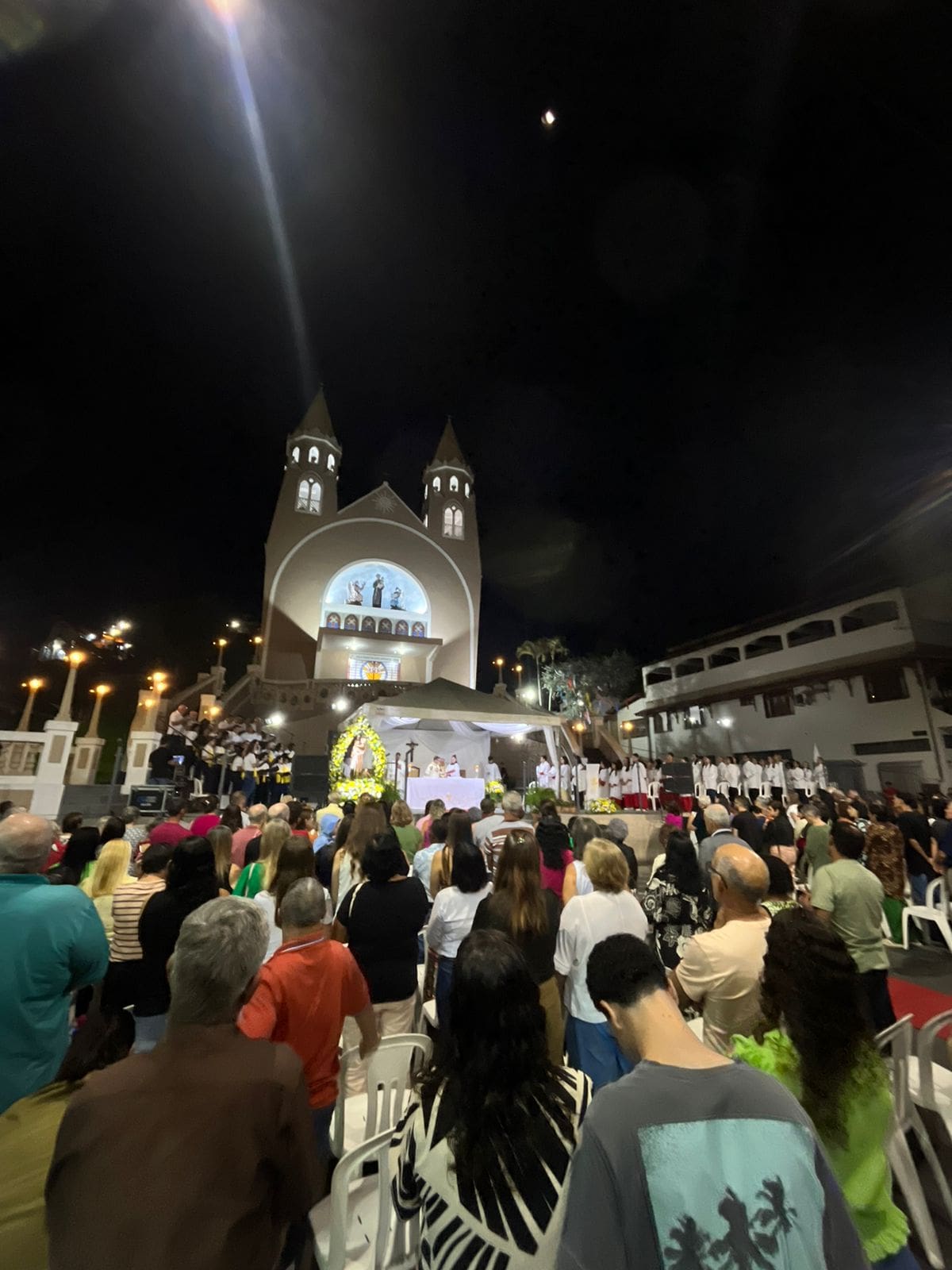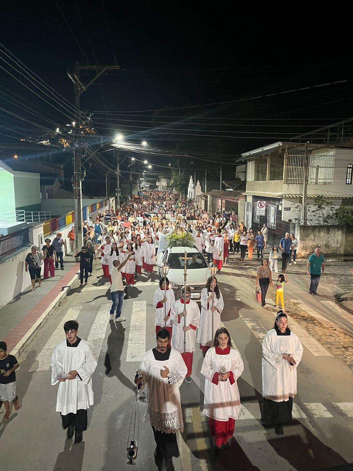 Preparada com muito zelo, a imagem principal de Santo Antônio foi levada pelos fiéis durante a tradicional procissão luminosa do padroeiro da cidade. As famílias aproveitaram o feriado municipal para participar das comemorações.