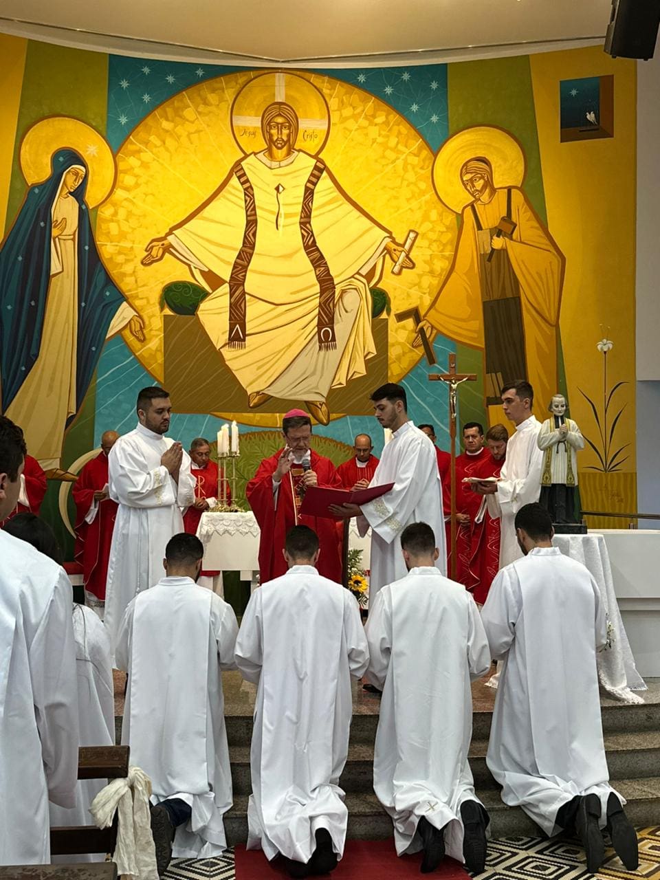 A comunidade de Alto Laje, em Cariacica, acolheu uma importante celebração religiosa em ação de graças pelos 37 anos do Seminário Maior São João Maria Vianney, da Diocese de Cachoeiro de Itapemirim. Na Santa Missa, realizada na comunidade São José Operário no último sábado, 10 de agosto, também aconteceu a instituição de novos ministérios e a admissão das ordens sacras de alguns seminaristas.