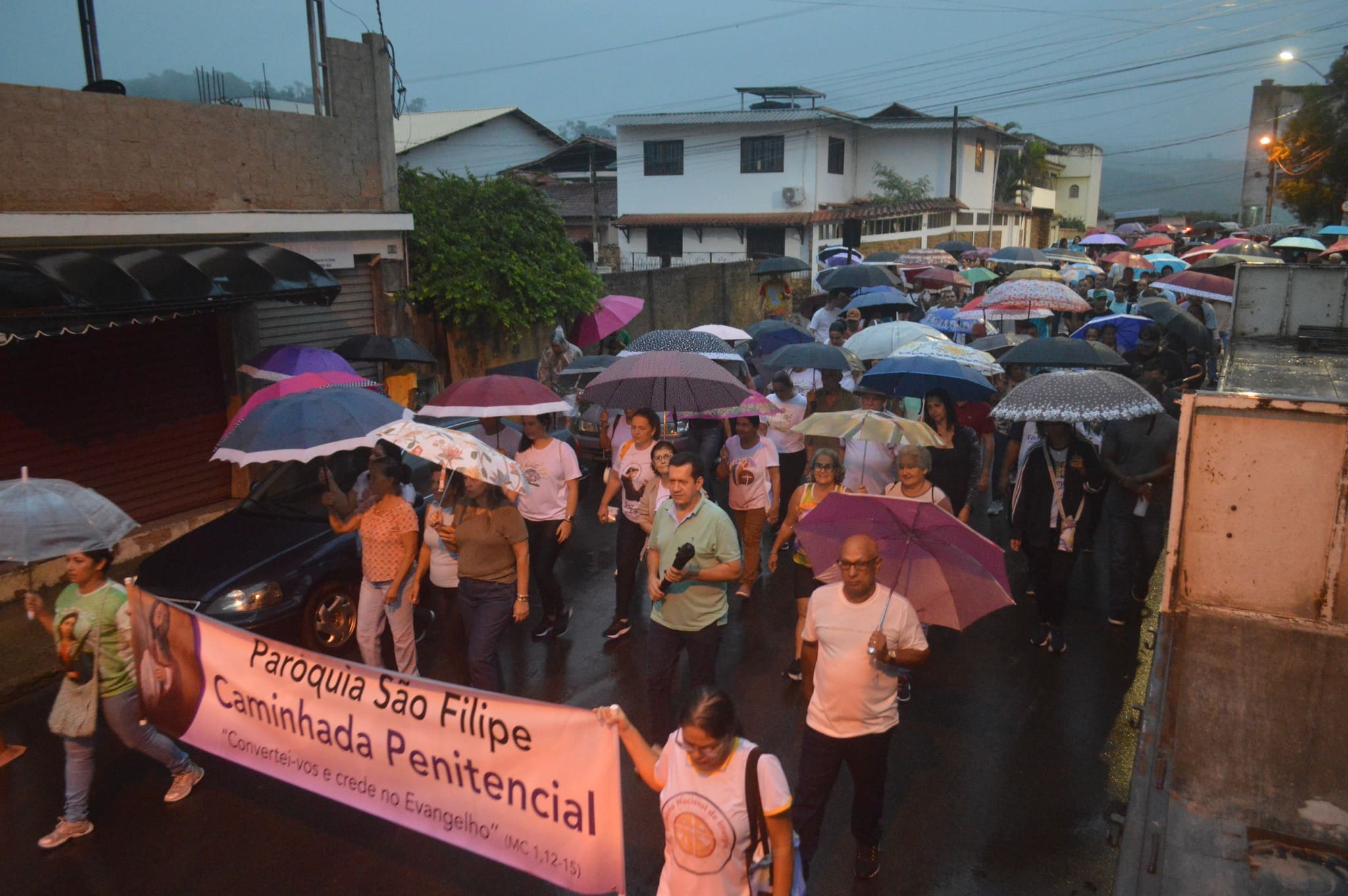 Sob forte chuva, mais de 500 fiéis participaram da Caminhada Penitencial da Paróquia São Filipe