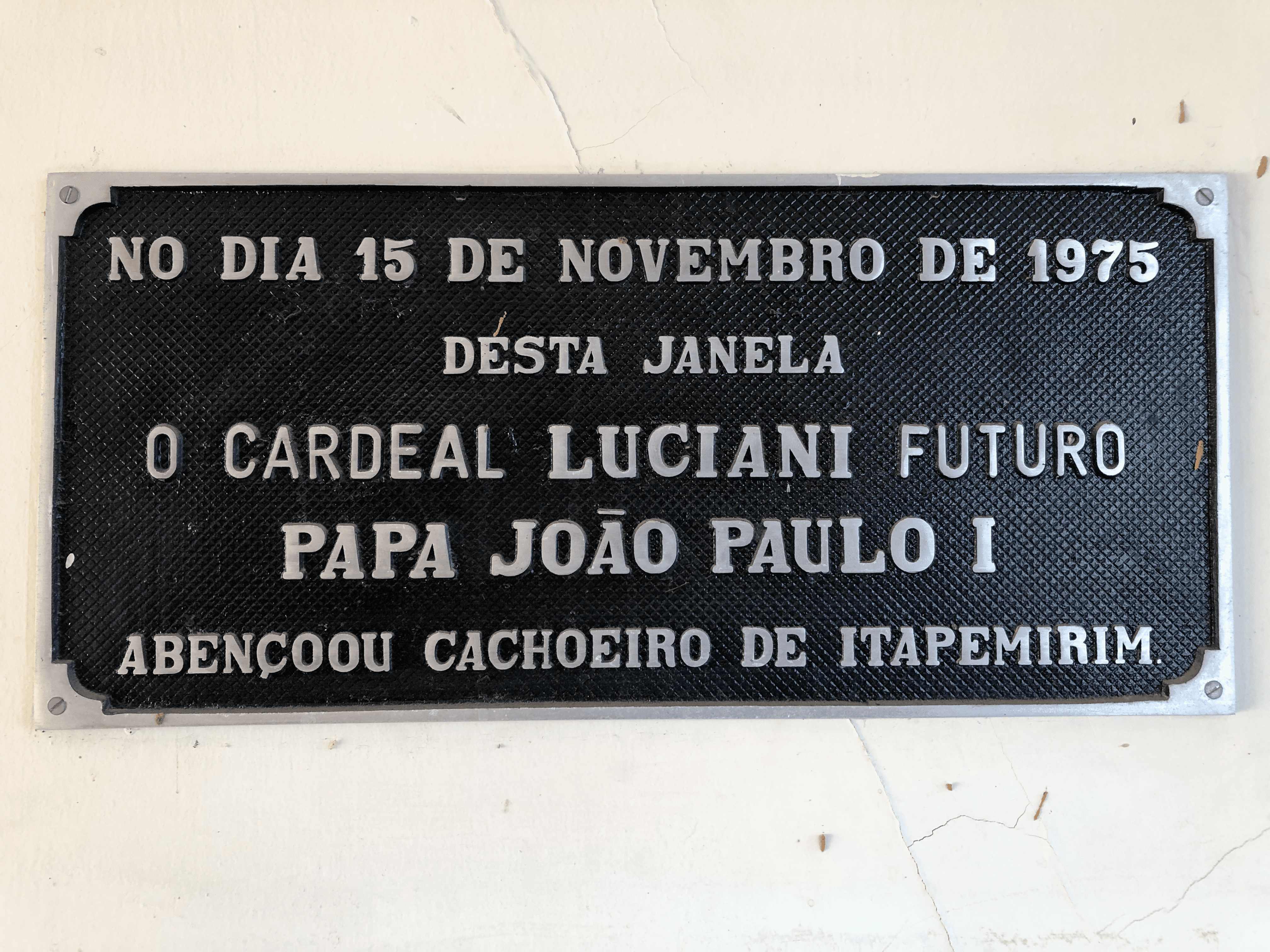 Há 48 anos um dos visitantes mais ilustres da história do Espírito Santo chegava em Cachoeiro de Itapemirim, interior do estado. As horas em que o futuro Papa João Paulo I esteve em solo cachoeirense estão eternizadas em uma placa de aço fundido.