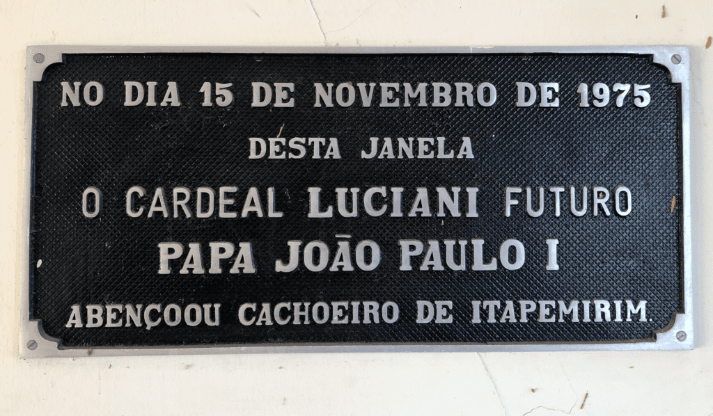 Há 48 anos um dos visitantes mais ilustres da história do Espírito Santo chegava em Cachoeiro de Itapemirim, interior do estado. As horas em que o futuro Papa João Paulo I esteve em solo cachoeirense estão eternizadas em uma placa de aço fundido.